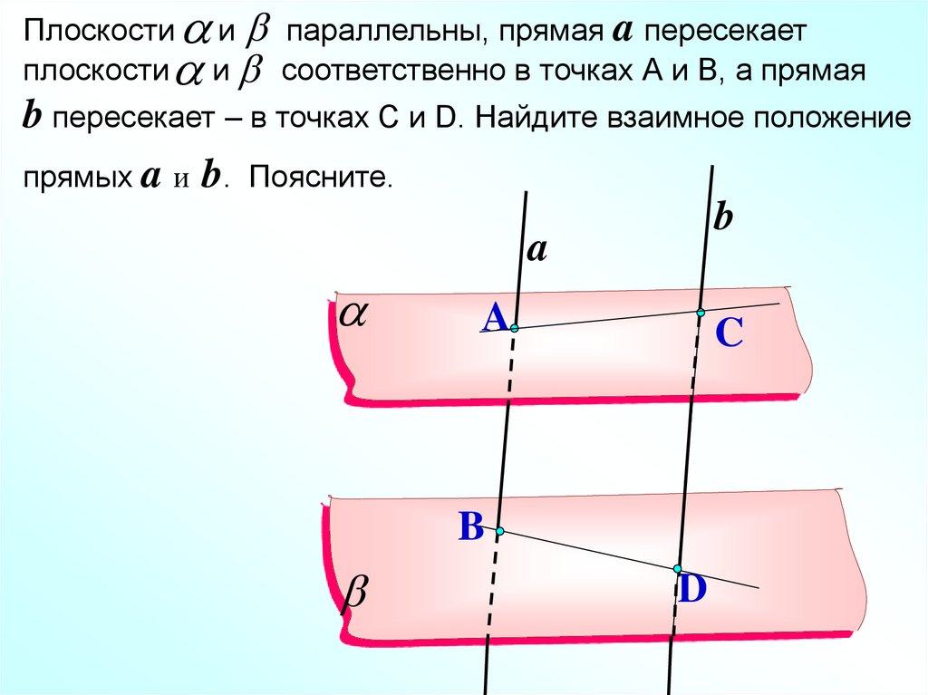 b пересекает – в точках С и D. Найдите взаимное положение