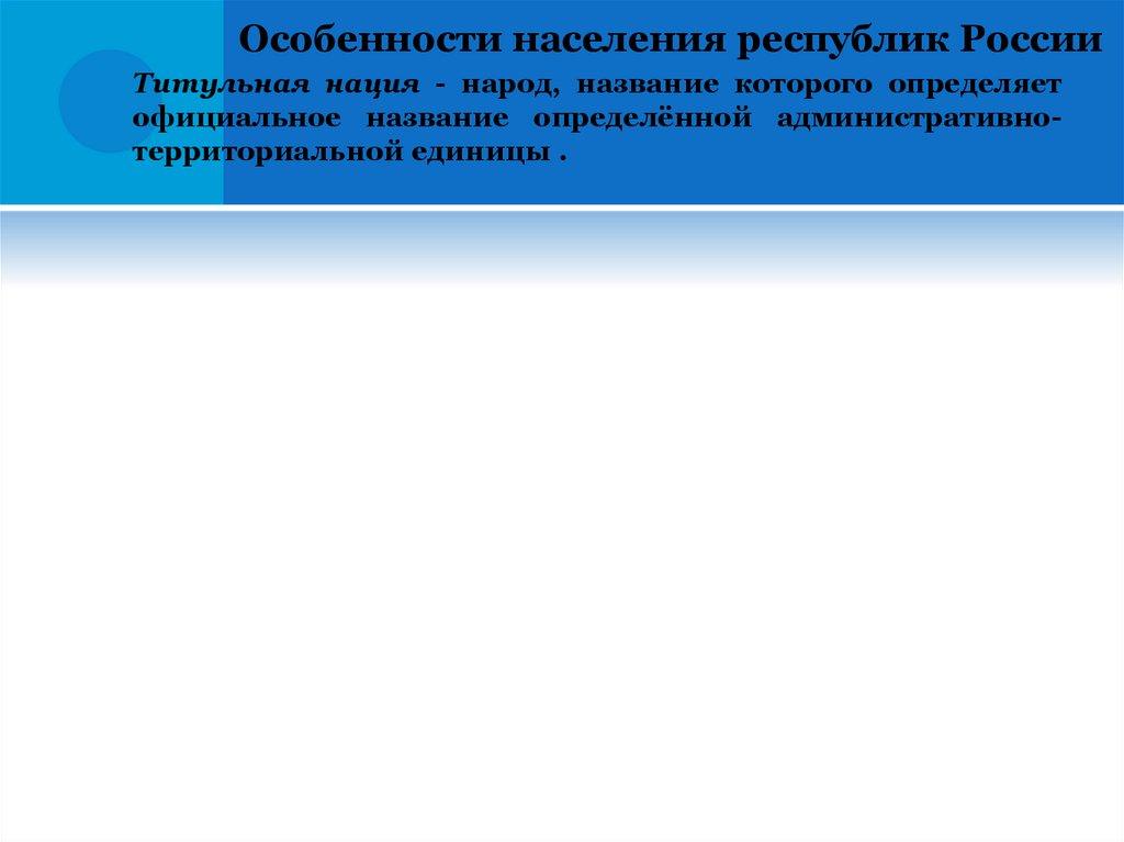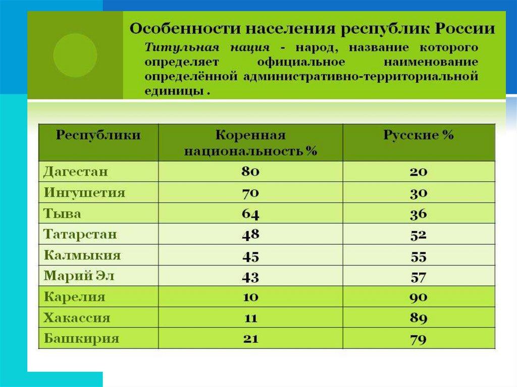 Особенности населения республик РоссииТитульная нация - народ, название которого определяет