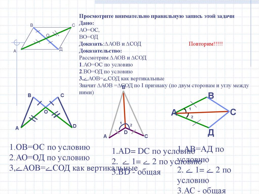 Доказать:ΔАОВ и ΔСОД