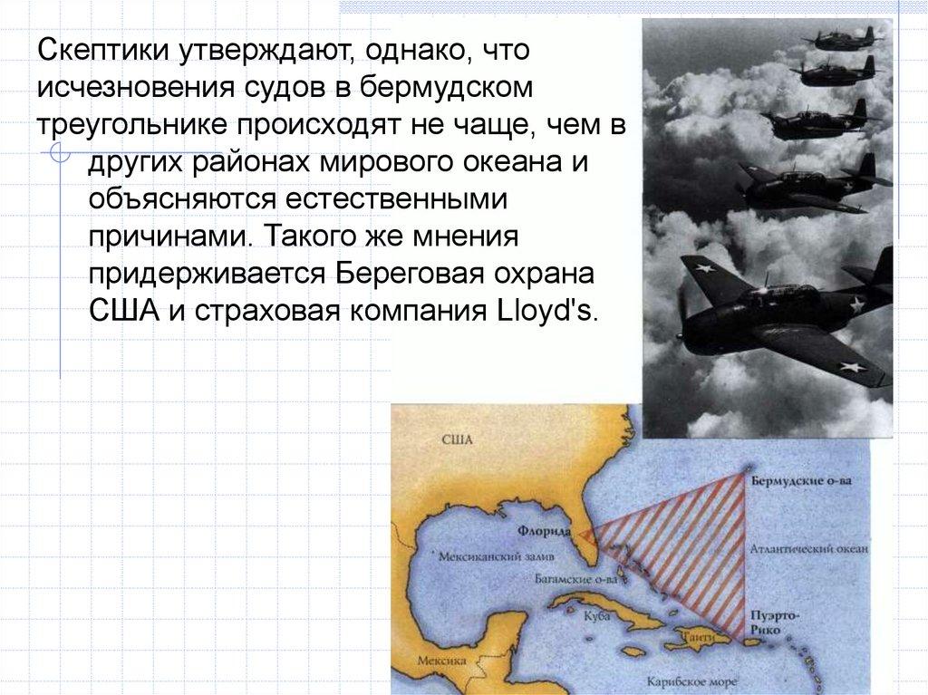 Скептики утверждают, однако, чтоисчезновения судов в бермудском