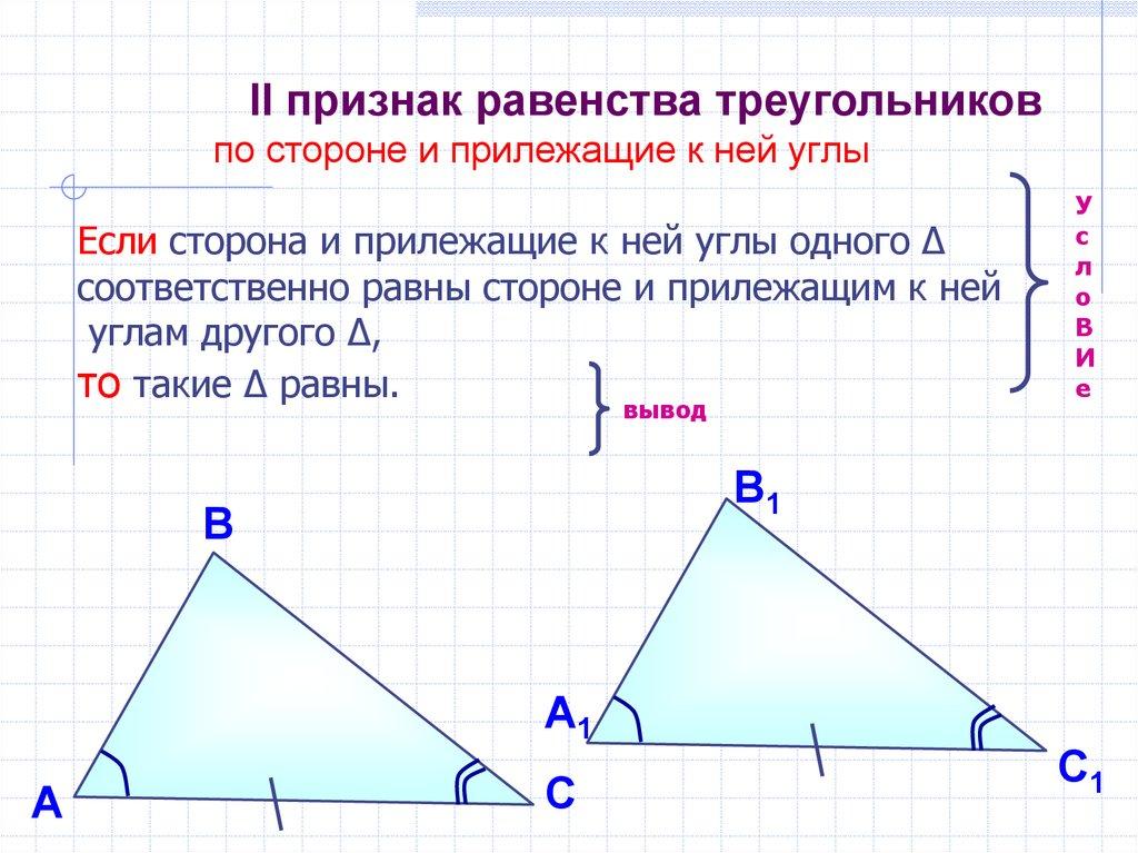 II признак равенства треугольниковпо стороне и прилежащие к ней углы