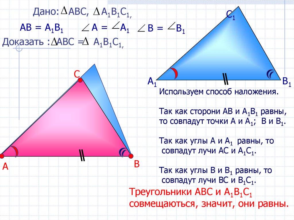 совмещаються, значит, они равны.