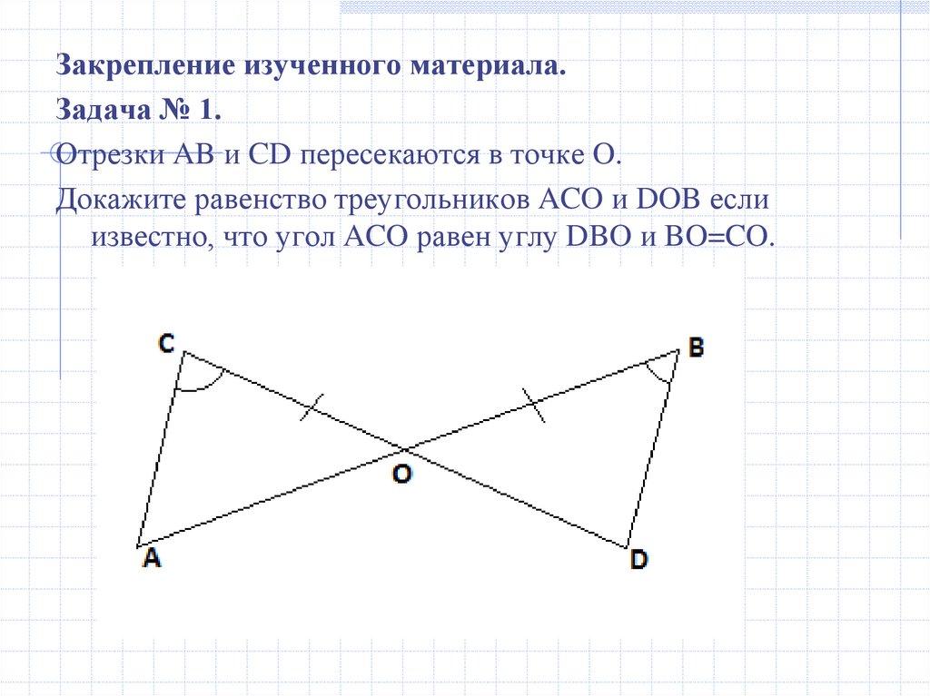 Отрезки AB и CD пересекаются в точке O.