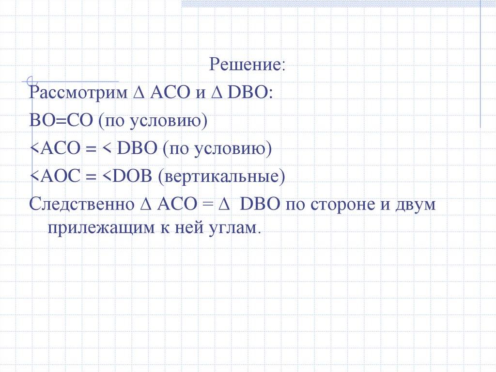 Решение:Рассмотрим ∆ ACO и ∆ DBO: