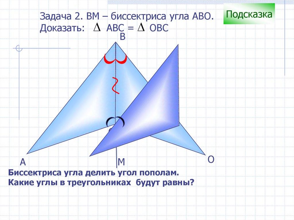 Задача 2. ВM – биссектриса угла АВО.Доказать: АВС = ОВС