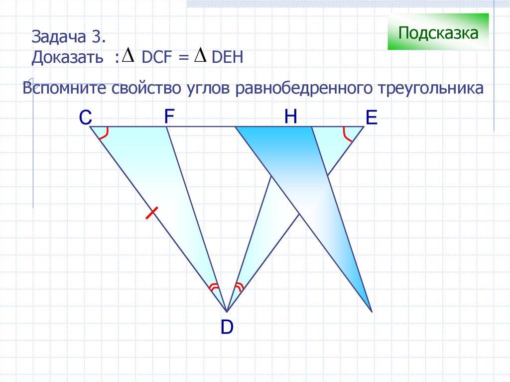 Для красного трекугольника найдите равный емуи щелкните по нему мышкой.