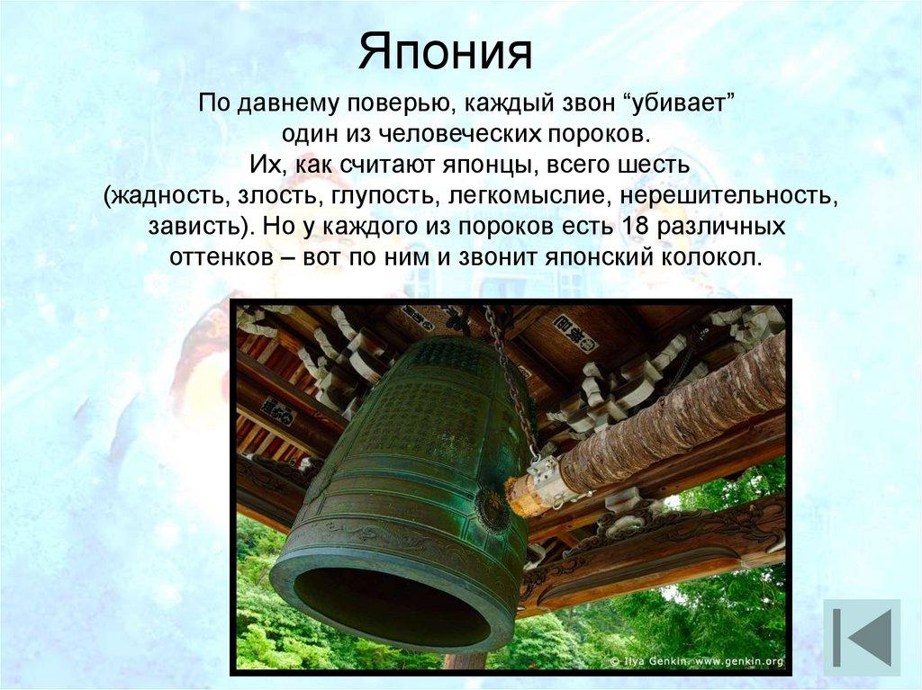 ЯпонияПо давнему поверью, каждый звон “убивает”