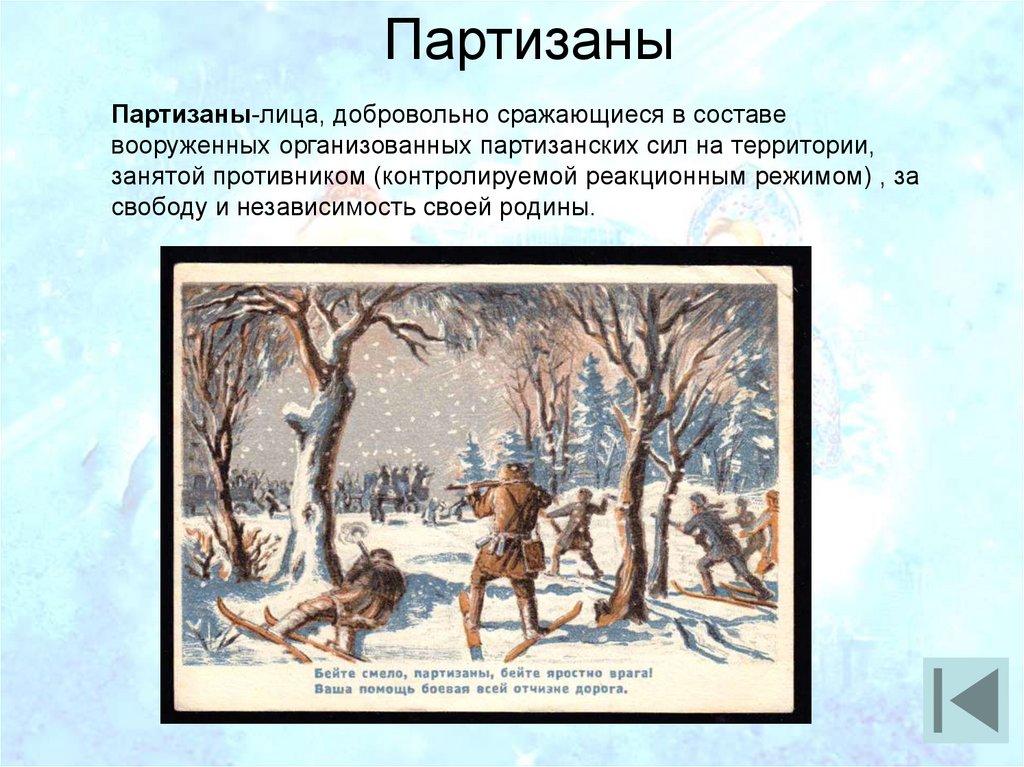 ПартизаныПартизаны-лица, добровольно сражающиеся в составе