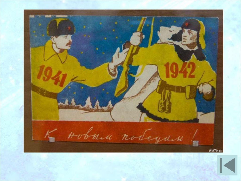 44. Какому событию, посвящена эта новогодняя открытка?