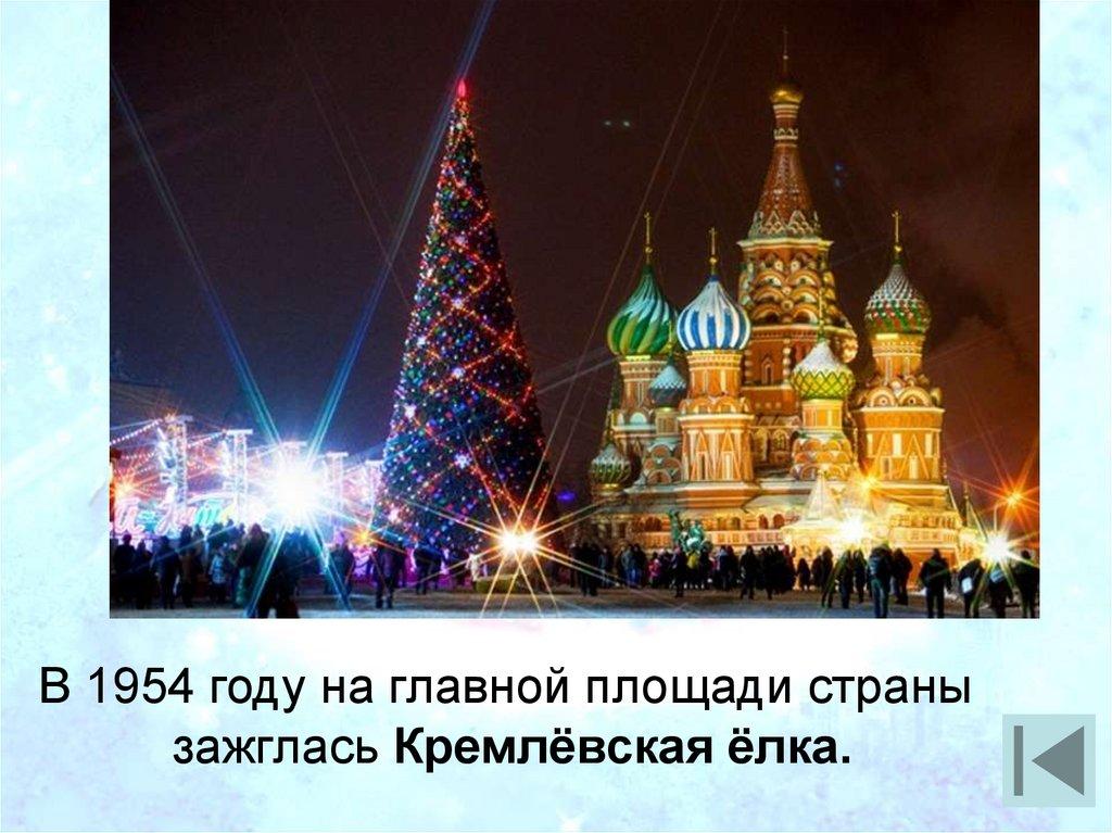 В 1954 году на главной площади странызажглась Кремлёвская ёлка.