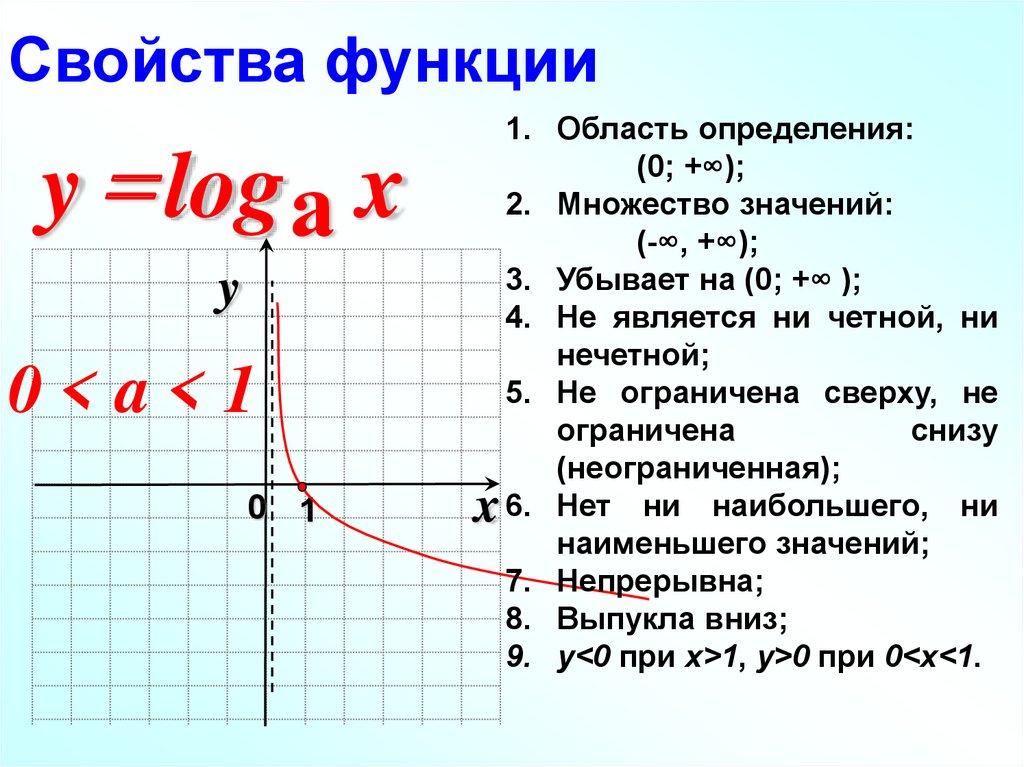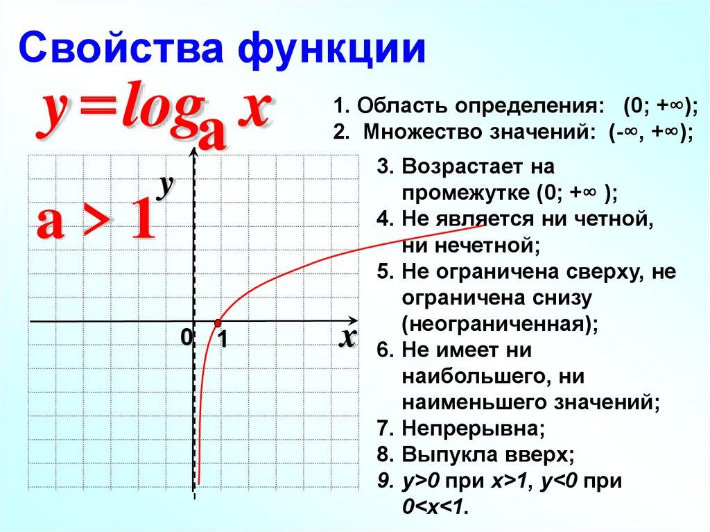 Свойства функцииy logа x