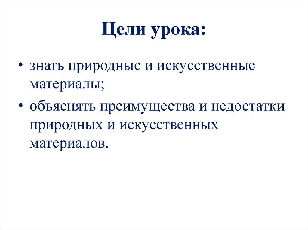 Цели урока:• знать природные и искусственные