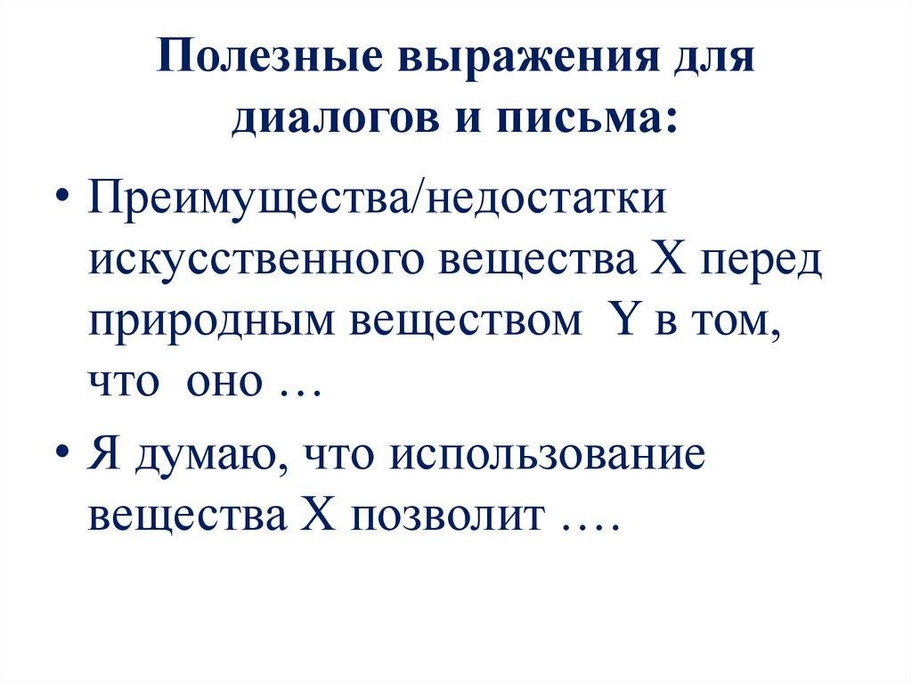 Полезные выражения длядиалогов и письма: