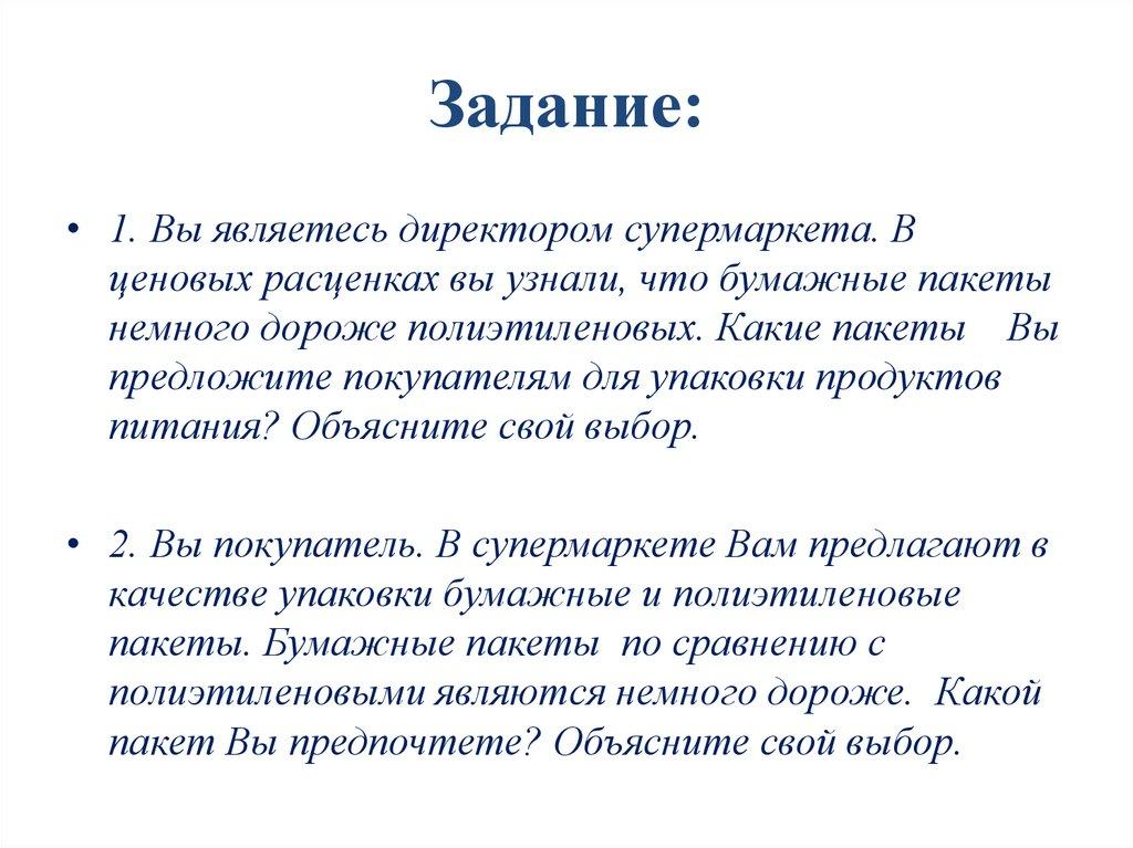 Задание:• 1. Вы являетесь директором супермаркета. В