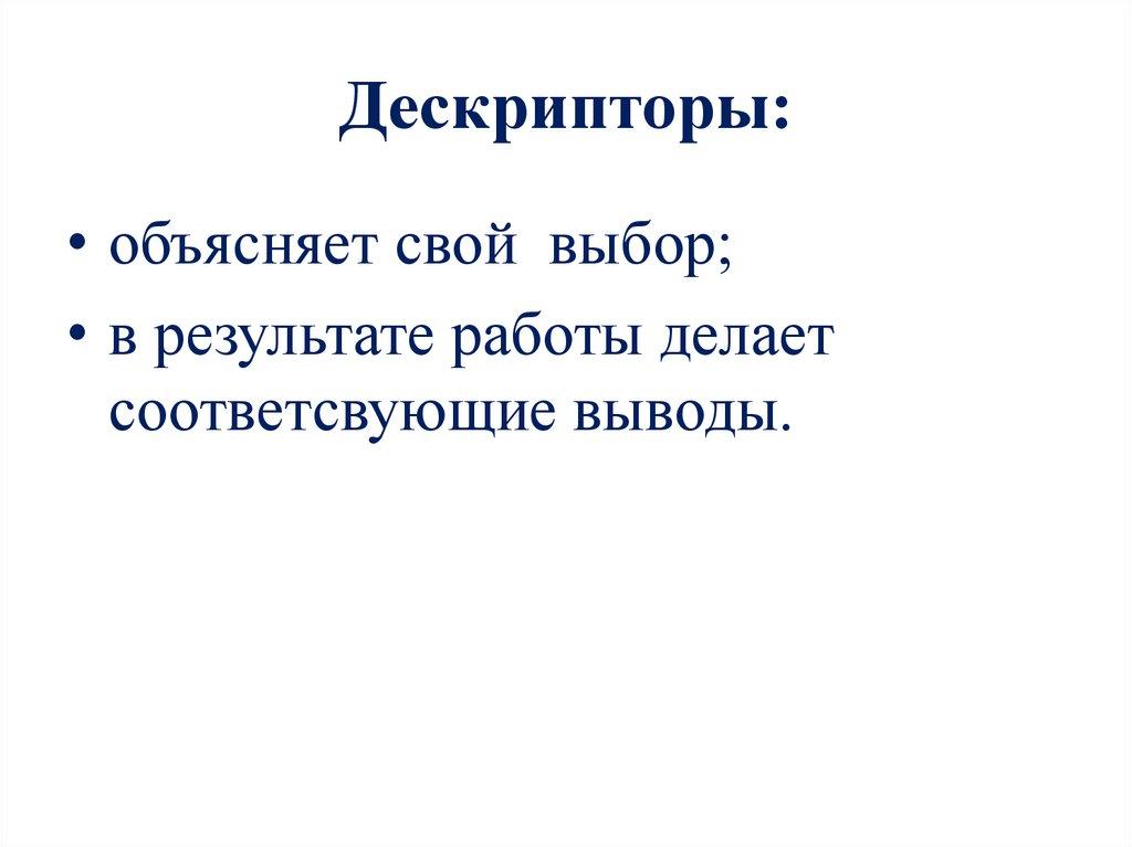 Дескрипторы:• объясняет свой выбор;