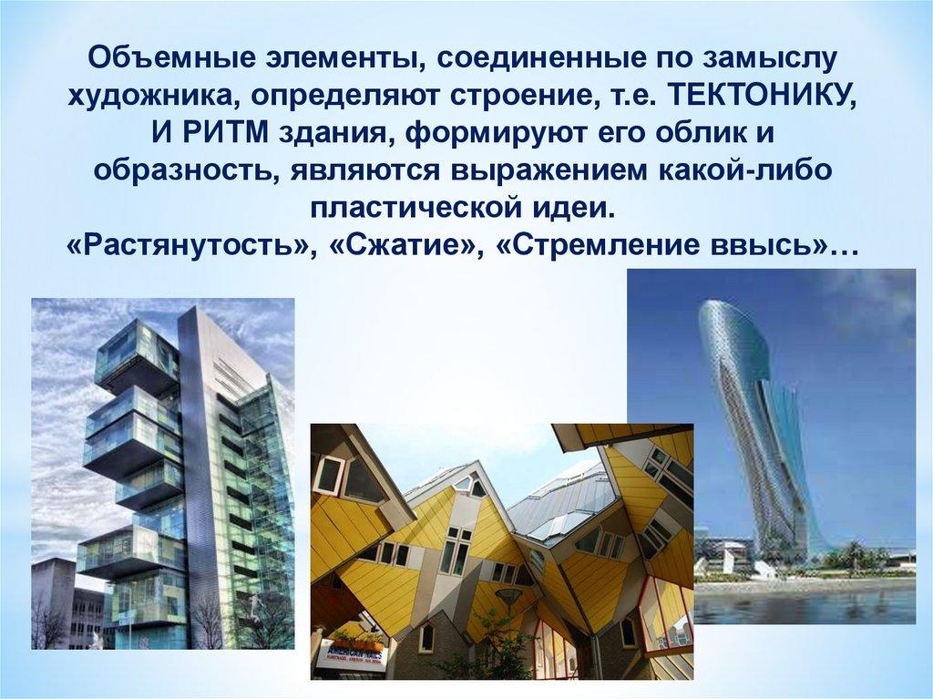 Объемные элементы, соединенные по замыслухудожника, определяют строение, т.е. ТЕКТОНИКУ,