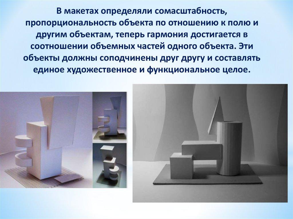 В макетах определяли сомасштабность,пропорциональность объекта по отношению к полю и
