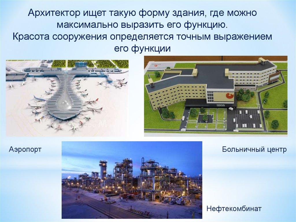Архитектор ищет такую форму здания, где можномаксимально выразить его функцию.