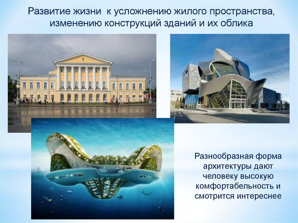 Развитие жизни к усложнению жилого пространства,изменению конструкций зданий и их облика