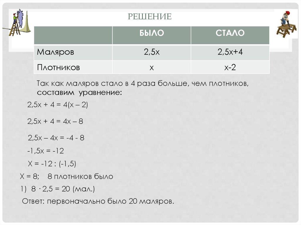 2,5х + 4 = 4х – 8