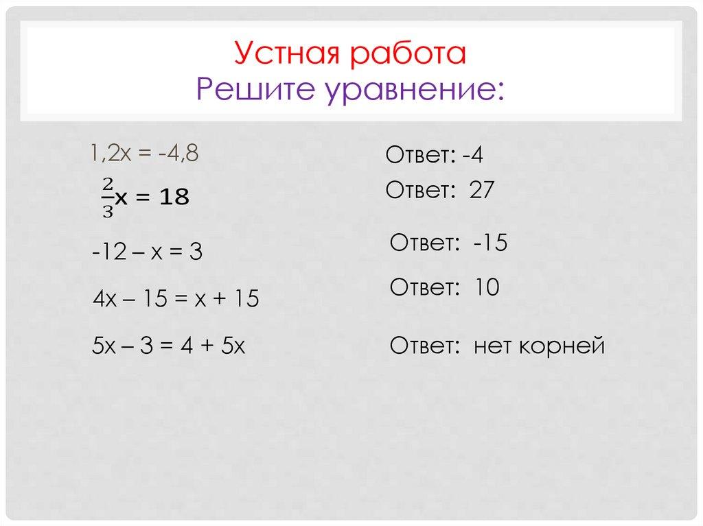 Устная работаРешите уравнение: