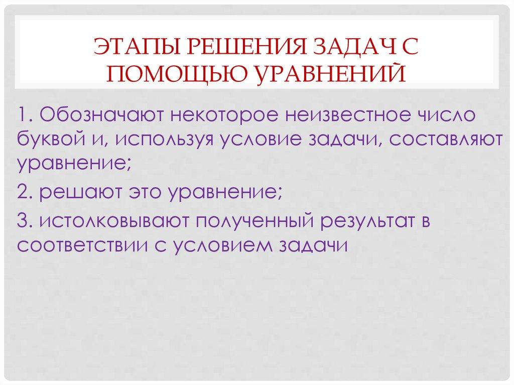 ЭТАПЫ РЕШЕНИЯ ЗАДАЧ СПОМОЩЬЮ УРАВНЕНИЙ
