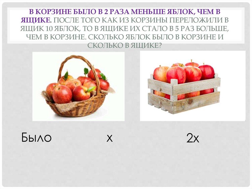 ЯБЛОК БЫЛО В КОРЗИНЕ И СКОЛЬКО В ЯЩИКЕ?