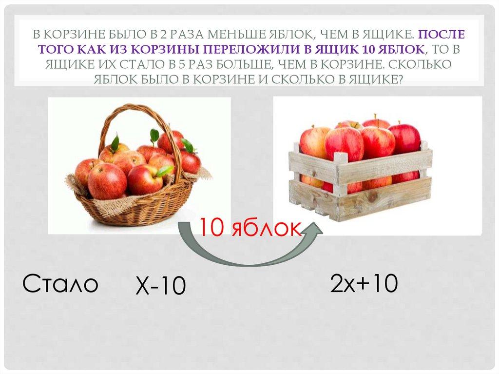 ЯЩИК 10 ЯБЛОК, ТО В ЯЩИКЕ ИХ СТАЛО В 5 РАЗ БОЛЬШЕ,