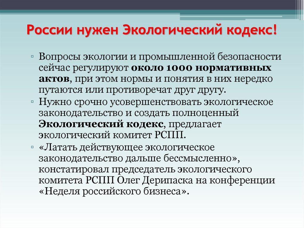 по охране окружающей среды фактически «переводит» экологическую