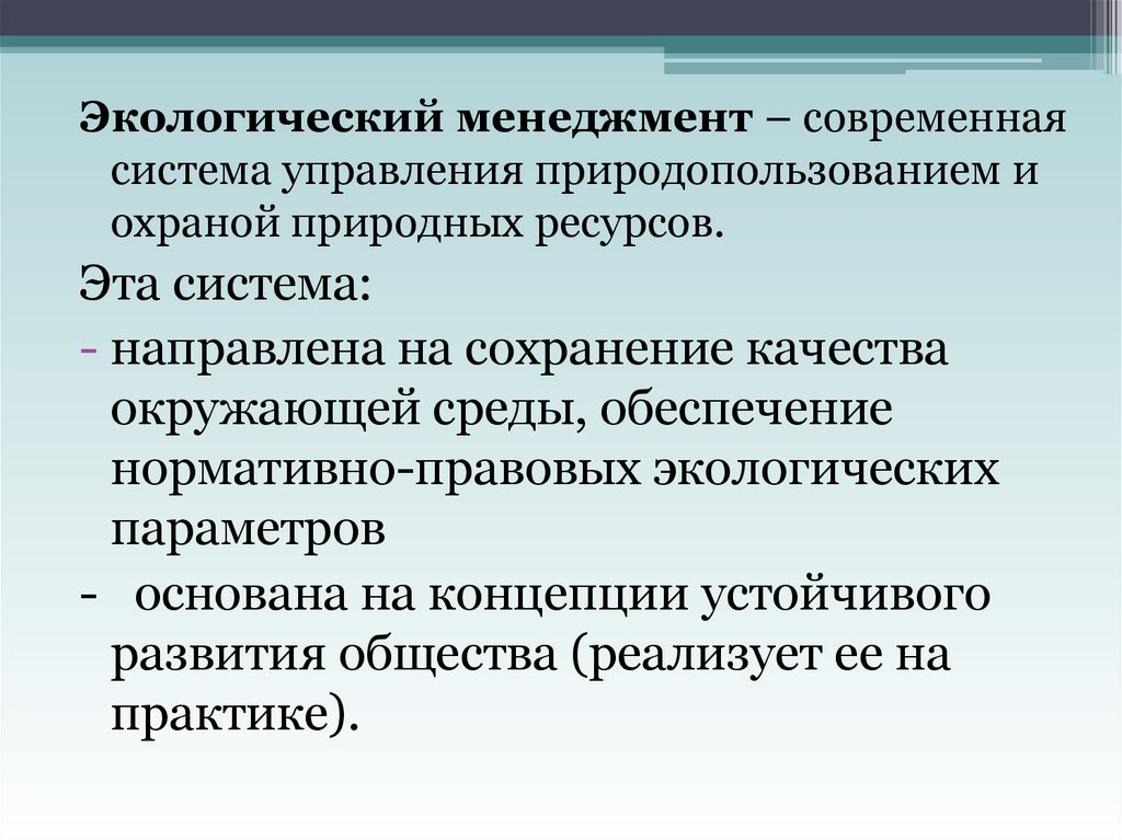 Экологический менеджмент – современнаясистема управления природопользованием и