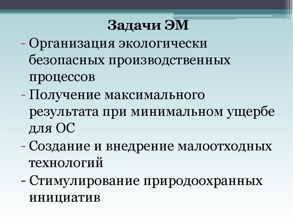 Задачи ЭМ- Организация экологически