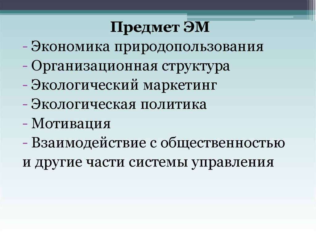 Предмет ЭМ- Экономика природопользования
