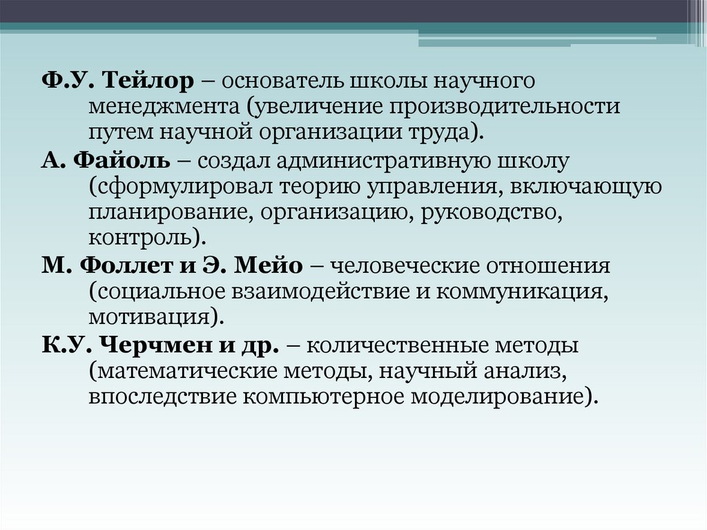 Ф.У. Тейлор – основатель школы научногоменеджмента (увеличение производительности