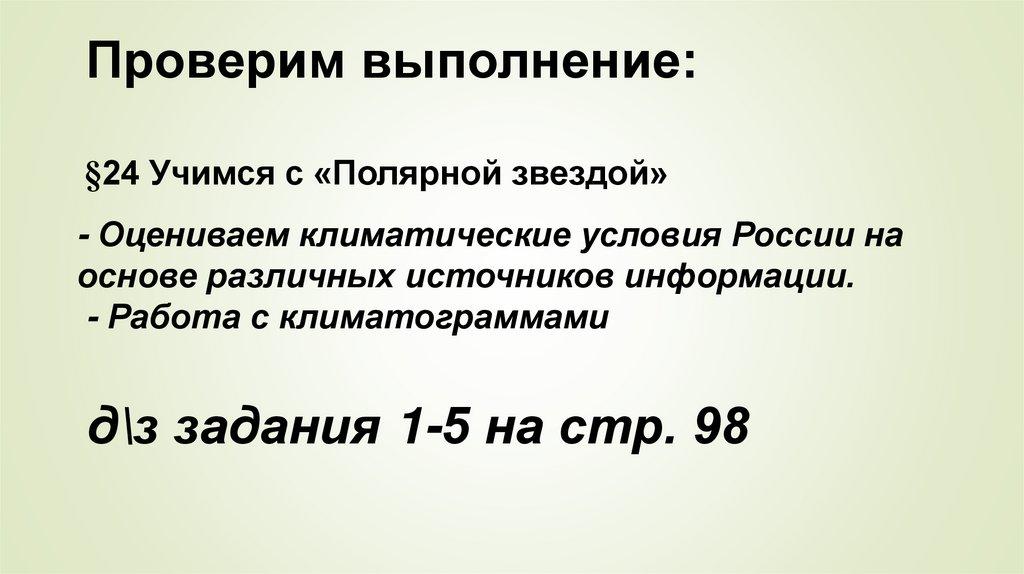 Проверим выполнение:§24 Учимся с «Полярной звездой»