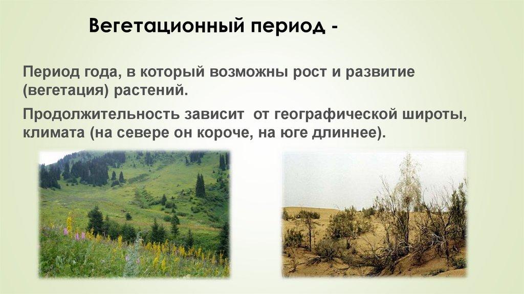 Вегетационный период Период года, в который возможны рост и развитие(вегетация) растений.