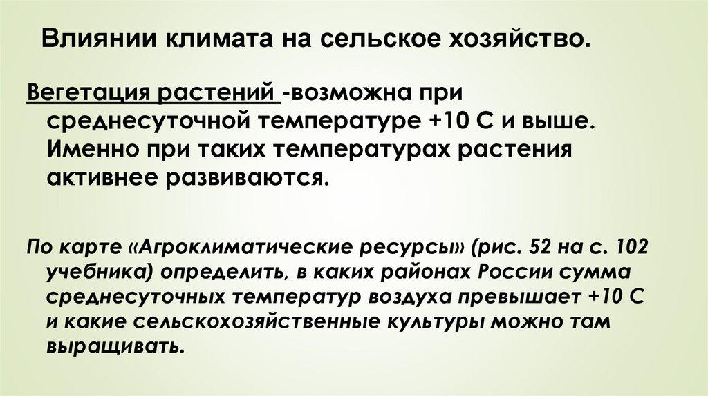 Влиянии климата на сельское хозяйство.Вегетация растений -возможна при