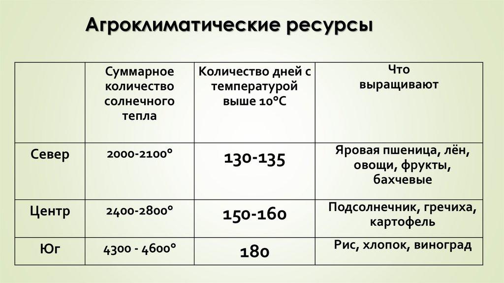 Агроклиматические ресурсыСуммарное
