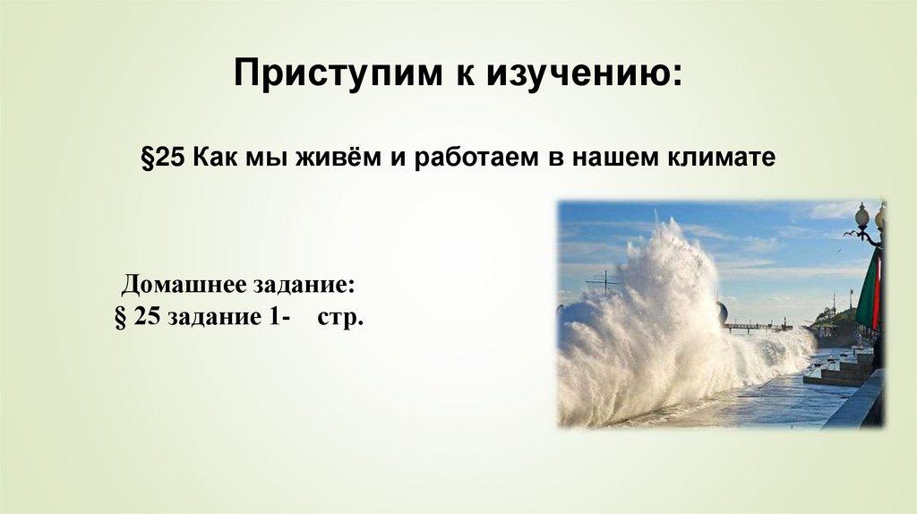Приступим к изучению:§25 Как мы живём и работаем в нашем климате
