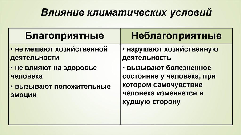 Влияние климатических условийБлагоприятные