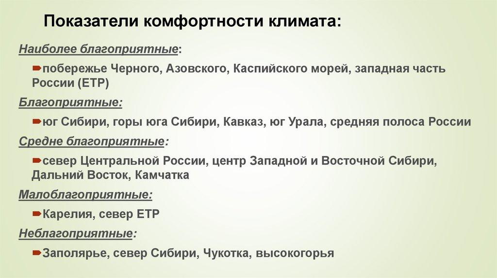 Показатели комфортности климата:Наиболее благоприятные: