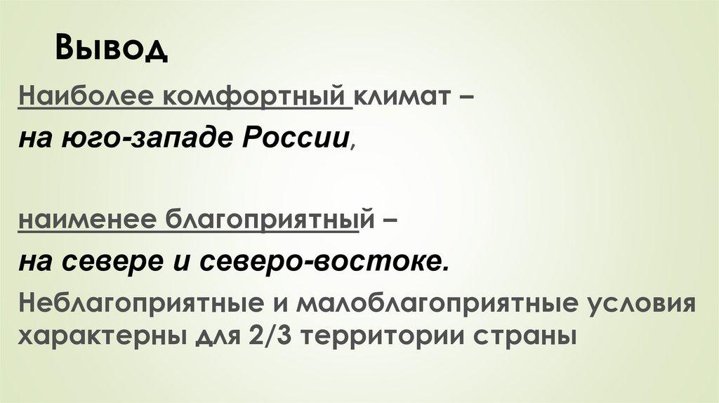 ВыводНаиболее комфортный климат –