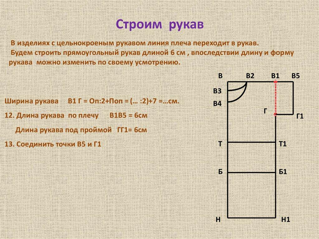 Строим рукавВ изделиях с цельнокроеным рукавом линия плеча переходит в рукав.
