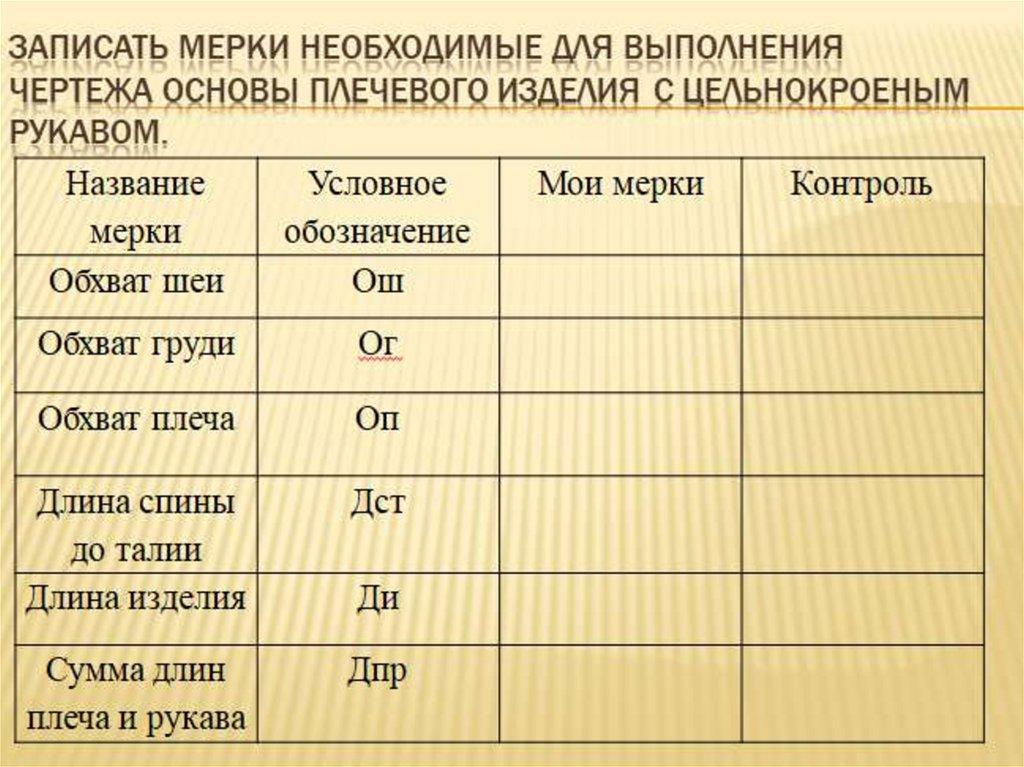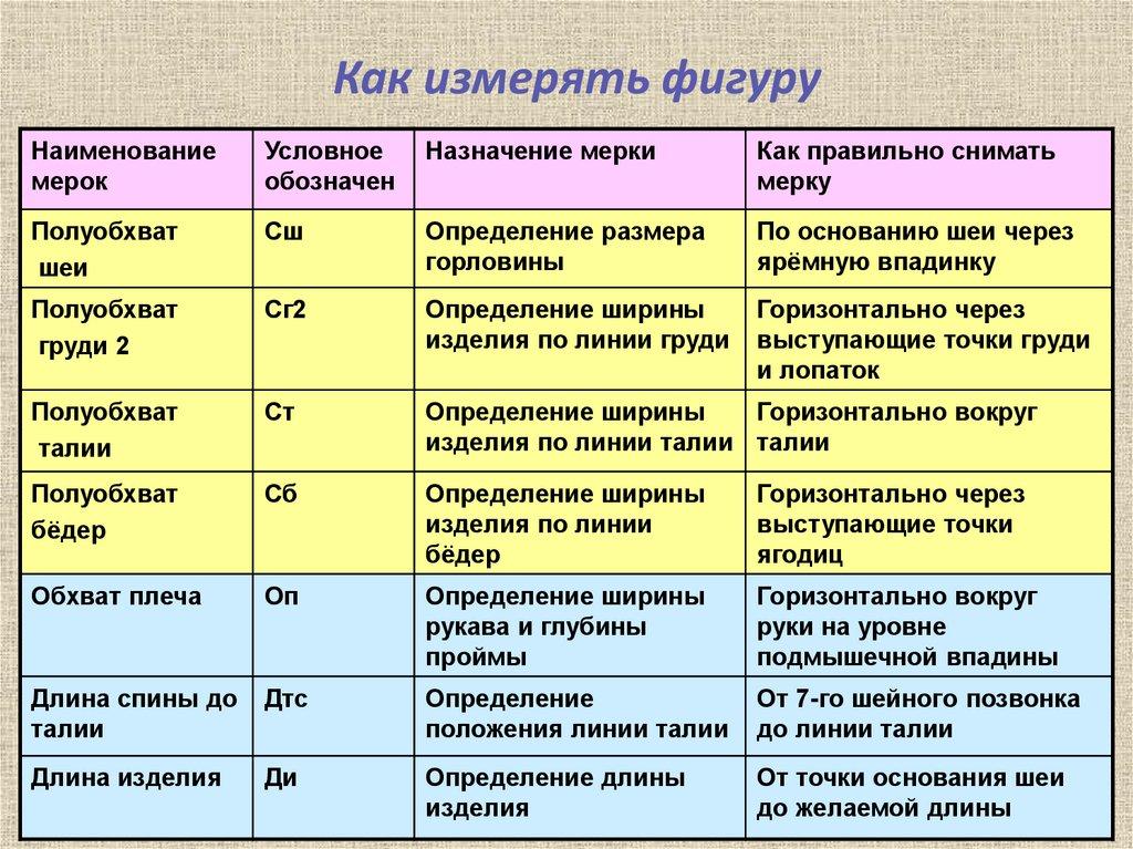 • Мерки. Как измерить фигуру и записать мерки смотри