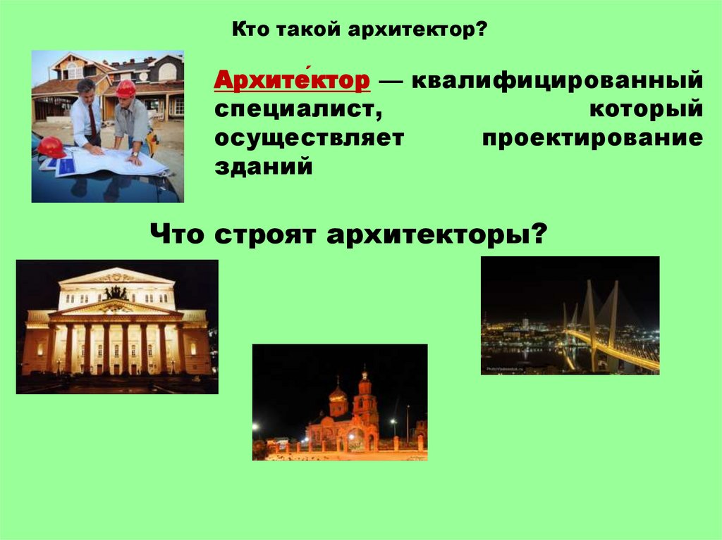 Кто такой архитектор?Архите́ктор — квалифицированный