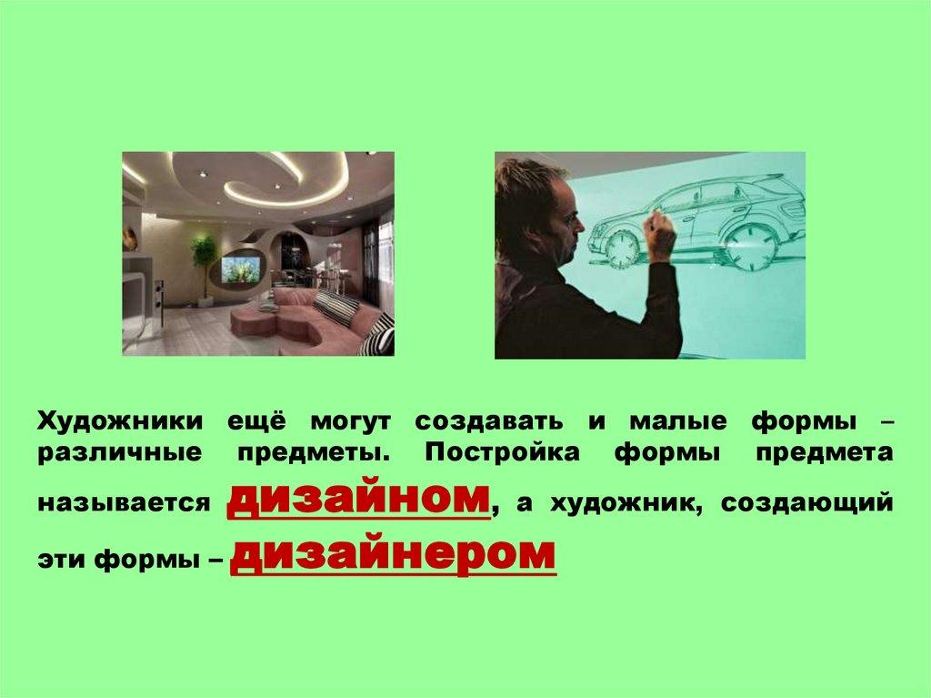 Художники ещё могут создавать и малые формы –различные предметы. Постройка формы предмета