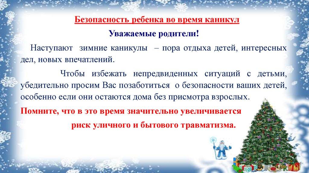 Наступают зимние каникулы – пора отдыха детей, интересных