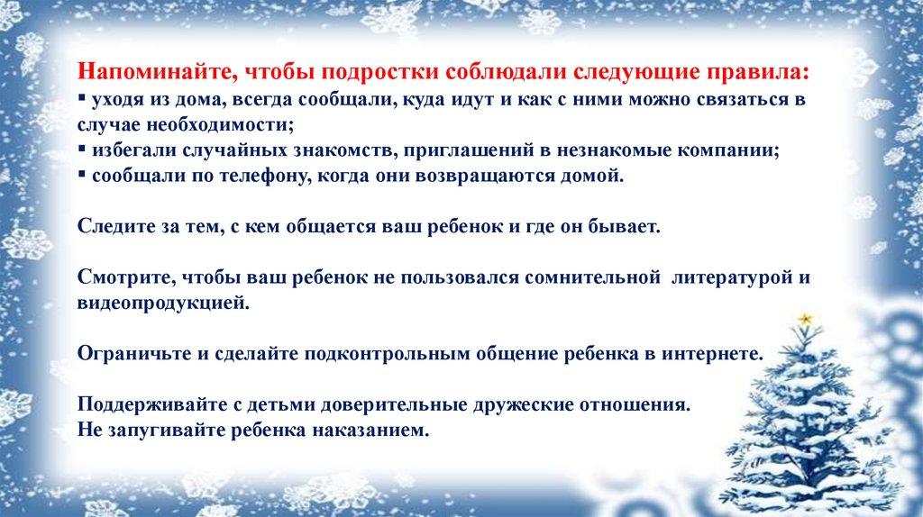 Напоминайте, чтобы подростки соблюдали следующие правила:уходя из дома, всегда сообщали, куда идут и как с ними можно связаться в