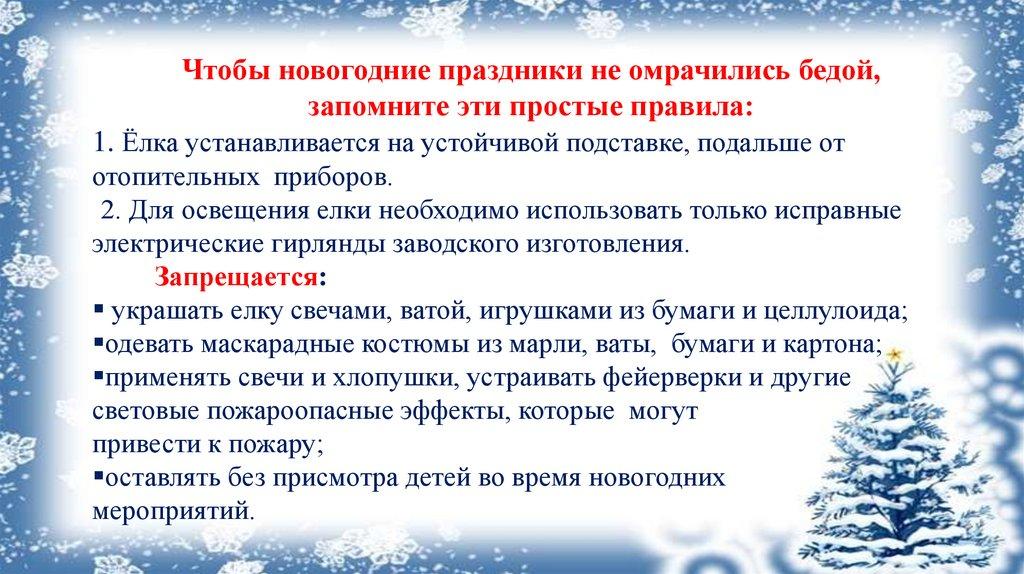 Чтобы новогодние праздники не омрачились бедой,запомните эти простые правила: