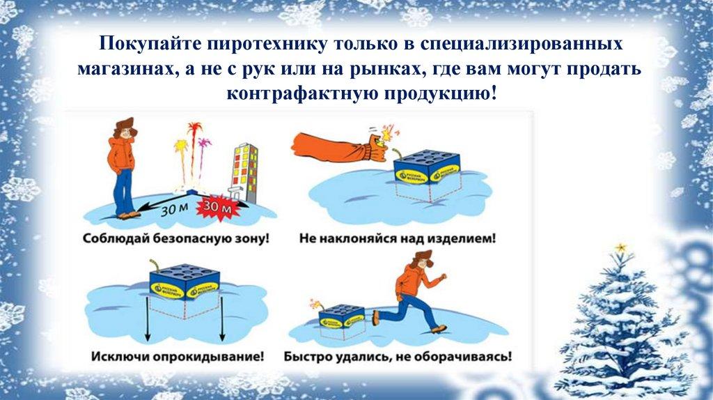 Покупайте пиротехнику только в специализированныхмагазинах, а не с рук или на рынках, где вам могут продать