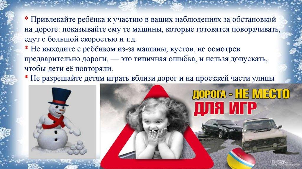 * Не разрешайте детям играть вблизи дорог и на проезжей части улицы